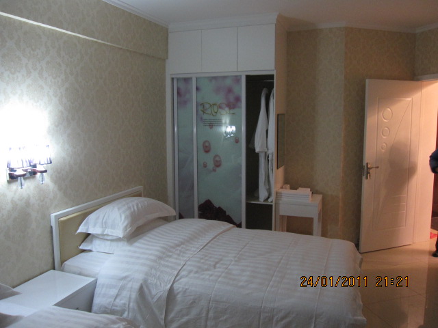 商务快捷、车接车送;外贸中心、高层电梯;欧式精装、自助厨房;数码电视、无线网络;茶话客厅、卫浴独立;百姓消费、宾至如归!