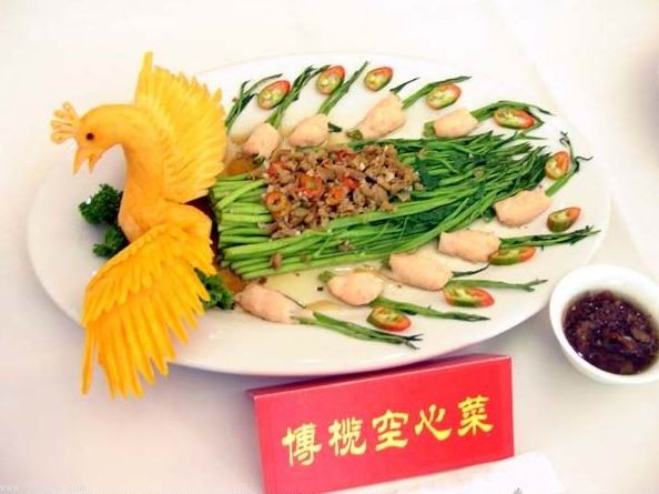 博白蕹菜,是一种生草本植物,茎空心、蔓生,又叫空心菜,是博白的特产鲜菜。其历史悠久,200多年前已名扬海外。 博白附城每年种植蕹菜面积约300亩,年产量150万公斤以上。全县种植蕹菜面积1000亩以上。