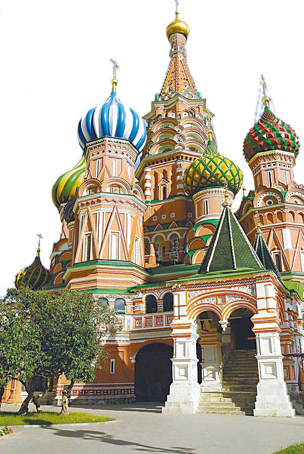瓦西里大教堂的任何一面都是正面,没有正面、侧面和背面之分。教堂中间是一个带有大尖顶的教堂冠,周围分布着8个带有不同色彩和花纹的小圆顶,再配上九个金色洋葱头状的教堂顶,风格独特。那8个塔楼上的8个圆顶分别代表一位圣人,而中间那座最高的教堂冠则象征着上帝的至高地位。为了保证不再出现同样教堂,伊凡大帝残酷地刺瞎了所有建筑师的双眼,伊凡大帝也因此背负了“恐怖沙皇”的罪名。