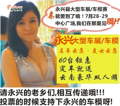 甲:永兴县北大桥广场看《大型车展》要挤爆了!乙:永兴县北大桥广场看《大型车展》要挤爆啦?丙:7月28-29快去永兴县北大桥中心广场看《大型车展》呀!品牌最优,为中国助威奥运特惠60台啊!定任意车型加100元还 ...