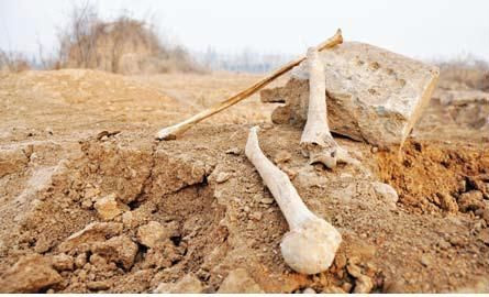 地块之内,洛阳铲带出的泥土两步远一排,每排数百米长,或蜿蜒曲折,或两点一线,蔚为壮观。 满眼的新老盗洞让人根本无法数清,一些老盗洞的洞口插满树枝,为牧羊人担心羊跌入其中而为。 每一个新挖痕迹的盗洞口,基本上都有一大堆的灰烬,这是盗墓者晚上烤火留下的。一些盗洞口尚存盗墓者喝过的老白干酒瓶、烧鸡包装袋和被丢弃的破烂手套。随处可见的还有古人骸骨、墓砖及一些破碎陶片。 一个3米来高大冢的边上,现出一个新挖的盗洞。当地人都知道,这样的大冢肯定是古代王公贵族的墓葬,每一个都有编号,盗挖这样的墓葬比普通的贵族墓判刑更重,一般人不敢轻易打它的主意。 “这地快成练兵场了!”向导说。二人都是邙山脚下的农民,广义的邙山西起三门峡,沿黄河南岸绵延至郑州市北的广武山,长度200多公里。狭义的邙山,是指洛阳市以北,黄河与其支流洛河的分水岭。 邙山陵墓群是目前最大的全国重点文物保护单位,面积达750平方公里,横跨七个县区,居民达20万之众。 在古墓葬最为集中的孟津县平乐镇、金村等乡村,自1980年代初盗墓风刮开之后,盗墓成了一些农民的第二职业。曾经的“盗墓家族”传承已随三次盗墓狂潮而淡化, “你可以随便打听,每一个村子,30岁到50岁,甚至可以提前到25岁的男人,最少有一半以上盗过墓或者正在盗墓。洛阳干这一行的人少说也得有一两万人。” 每年的秋天,是盗墓的黄金季节。玉米长到一人多高时,形成了一片天然的掩护屏障,盗墓者会掂着洛阳铲钻进青纱帐,如果碰到干活的农民就会递过去50元到200元,封口费普遍的行情是100元,很少有人拒绝接受或报警。 没有青纱帐的季节,盗墓大多只能在夜晚,毕竟这是个见不得光的行当。 东西挖出后回填盗洞,不影响农民种地,这是这些农民出身的盗墓者坚守的职业道德,也是无人耕种的荒地内盗洞密集的原因。 2010年3月的中国“两会”上,一些文物官员和专家痛心疾首地说:“全国盗墓大军人次远不止10万,已经形成产业化。”国家文物局则对外公布,近年来,中国文物流散到世界40多个国家大型博物馆的高达160万件。 大陆最为著名的四大盗墓基地,名列首位的即是洛阳,排在其后的分别是长沙、皖浙交界的东阳县和河南淅川。