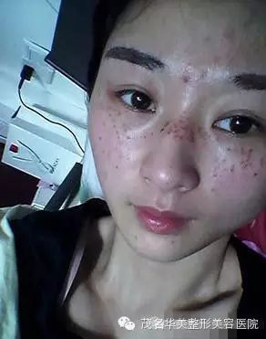 手术当天晚上回家的时候就是这幅样子了……老妈看见我这幅样子还被我小小的吓了一下下……说哪来那么大的勇气还跑去自己把斑给做掉了。呜呜呜。冲动是魔鬼啊。 第二天早上就各种照镜子,结果感觉脸上黑印比昨天淡了一点点,突然又好期待了。华美医生还打电话提醒我,要多点喷修复因子,还有别碰水哦,啪啦啪啦~~很像我姐姐那样,对我细心得,又有点小啰嗦。哈哈。。